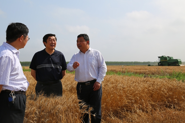 6月7日,蘇墾農發(fā)股份公司總裁胡兆輝一行到寶應湖檢查指導三夏工作,寶應湖農場(chǎng)黨委書(shū)記魏軍民、副總經(jīng)理夏永龍陪同檢查。
