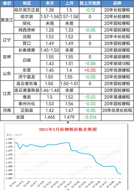 2、國內稻谷(粳稻)2021 年3 月行情
