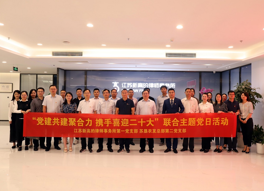 •        為推進(jìn)支部黨建與業(yè)務(wù)工作深度融合,9月22日,蘇墾農發(fā)總部第二黨支部與江蘇新高的律師事務(wù)所第一黨支部以“黨建共建聚合力 攜手喜迎二十大”為主題,聯(lián)合開(kāi)展主題黨日活動(dòng),讓主題黨日活動(dòng)內容“新”起來(lái)、方式“活”起來(lái)、黨員“動(dòng)”起來(lái)。雙方支部黨員、發(fā)展對象、入黨積極分子參加了活動(dòng),公司領(lǐng)導以普通黨員身份參與活動(dòng)。