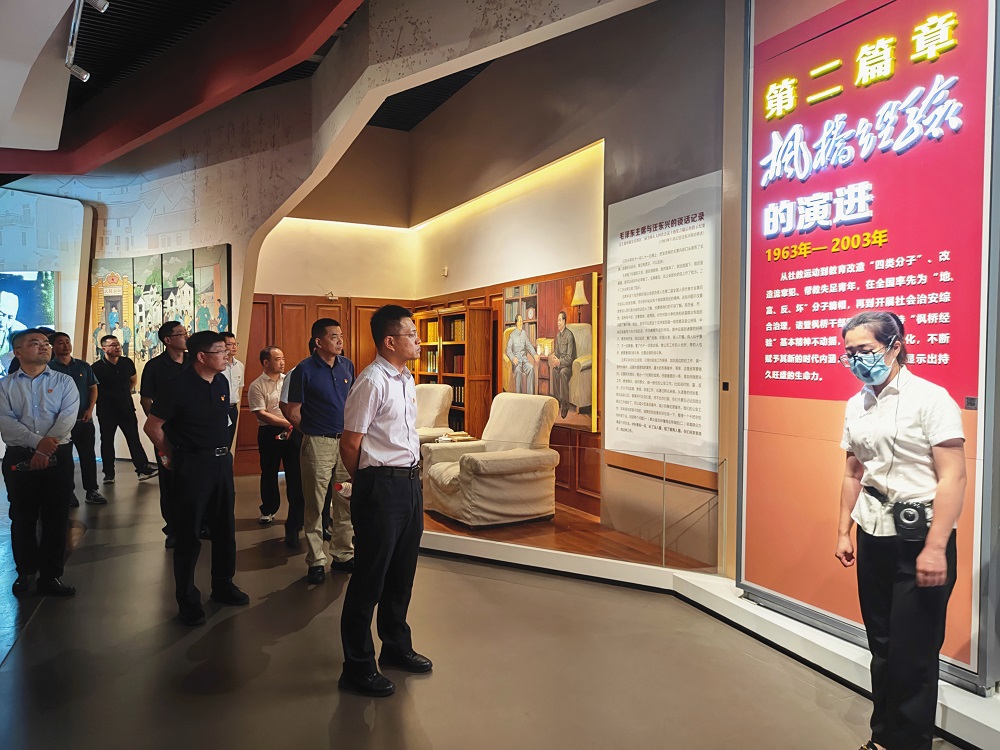 在諸暨市楓橋鎮,通過(guò)參觀(guān)楓橋經(jīng)驗陳列館、聆聽(tīng)楓橋經(jīng)驗創(chuàng )始人的嫡系傳承人的精彩講解,全體人員進(jìn)一步了解了“楓橋經(jīng)驗”的歷史溯源和楓源村、杜黃新村等村集體的創(chuàng )新實(shí)踐,深刻領(lǐng)會(huì )了新時(shí)代“楓橋經(jīng)驗”“矛盾不上交、平安不出事、服務(wù)不缺位”的理念。