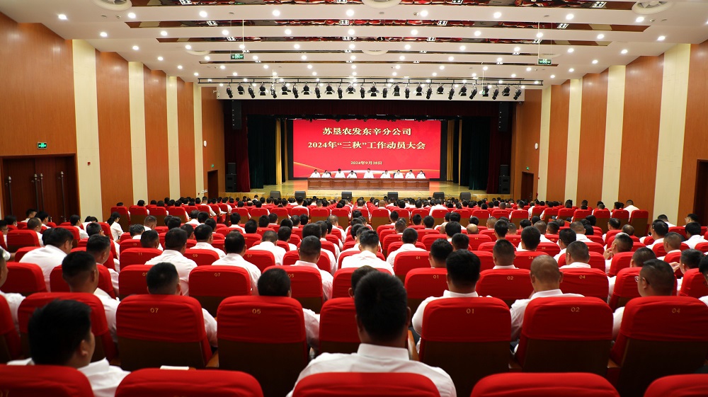 為深入貫徹落實(shí)蘇墾農發(fā)“三秋”工作會(huì )議精神,全力以赴打好“三秋”攻堅戰,9月28日上午,蘇墾農發(fā)東辛分公司在文化活動(dòng)中心召開(kāi)2024年“三秋”工作動(dòng)員大會(huì )。東辛黨委書(shū)記、董事長(cháng)、蘇墾農發(fā)東辛分公司總經(jīng)理趙志講話(huà),黨委副書(shū)記姜杰主持會(huì )議,黨委委員、蘇墾農發(fā)東辛分公司常務(wù)副總經(jīng)理陳躍武作“三秋”工作動(dòng)員報告。